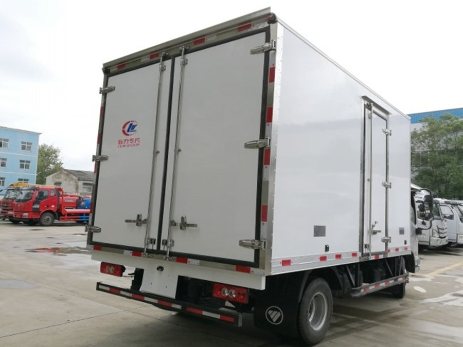 九 選裝配置:可選裝廂體側(cè)門(單側(cè)門或雙開(kāi)門),可選裝鋁合金導(dǎo)風(fēng)槽(導(dǎo)風(fēng)槽有助于冷氣循環(huán),提升制冷效果),可選裝廂體頂部加固肉勾滑道(直滑道 或 對(duì)接互通式拐彎滑道)??蛇x裝廂體內(nèi)部采用全面不銹鋼材質(zhì)(海鮮運(yùn)輸必須加裝,海水有腐蝕性),可選裝280V-380V外接電源(停車熄火后可插電冷機(jī)繼續(xù)制冷工作),可選裝溫濕度監(jiān)控記錄儀(帶打印功能)。