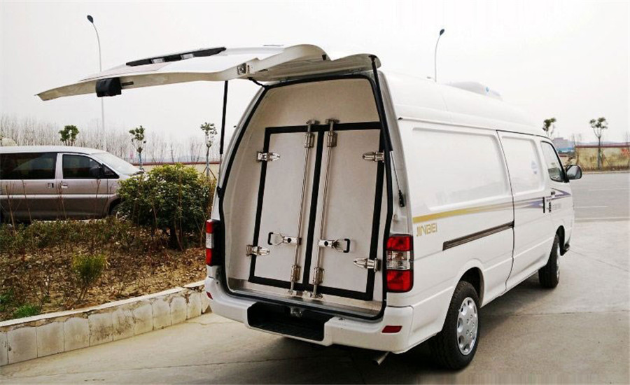 七 廂體配置:我公司面包式冷藏車工藝采用專用模具壓制成型,保溫性能達到國家A級標準,保溫材料為無縫隙填充聚氨酯發(fā)泡,廂體內(nèi)外采用高強度玻璃鋼板材質(zhì),樹脂膠無縫連接,后配全密封雙開門,不銹鋼門框包邊,不銹鋼合頁和鎖件,廂體內(nèi)部加裝LED夜間照明燈。