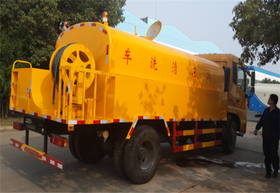 組成部分:清洗車主要由汽車底盤(全國聯(lián)保)、水罐(采用優(yōu)質(zhì)碳鋼5mm厚)、水路系統(tǒng)、液壓系統(tǒng)、卷管器(60米自動(dòng)回位卷盤)、沖洗管道、高壓噴頭(不銹鋼)等組成。