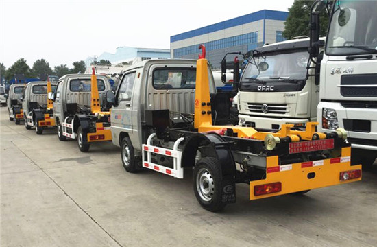 勾臂式垃圾車在裝載垃圾前,空載運轉(zhuǎn)達到6個標準氣壓時,掛上取力器,檢查各部件有無泄漏或異常后,再按操作指示牌指示位置進行操作,具體操作步驟如下: