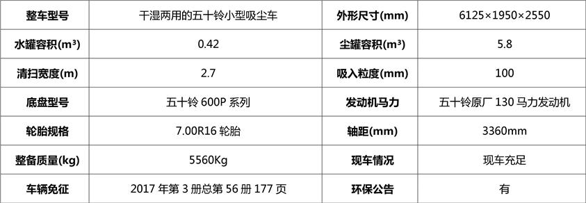 二、五十鈴吸塵車公告參數(shù):