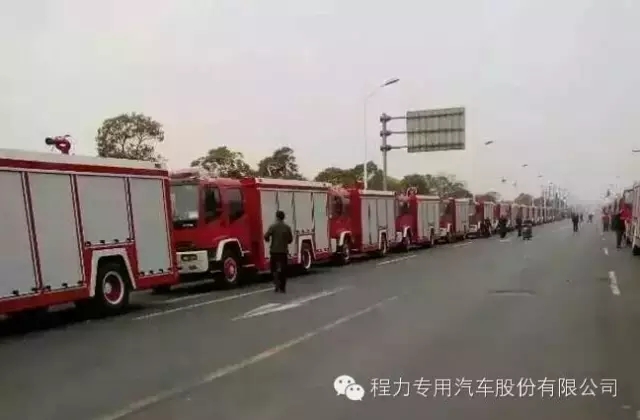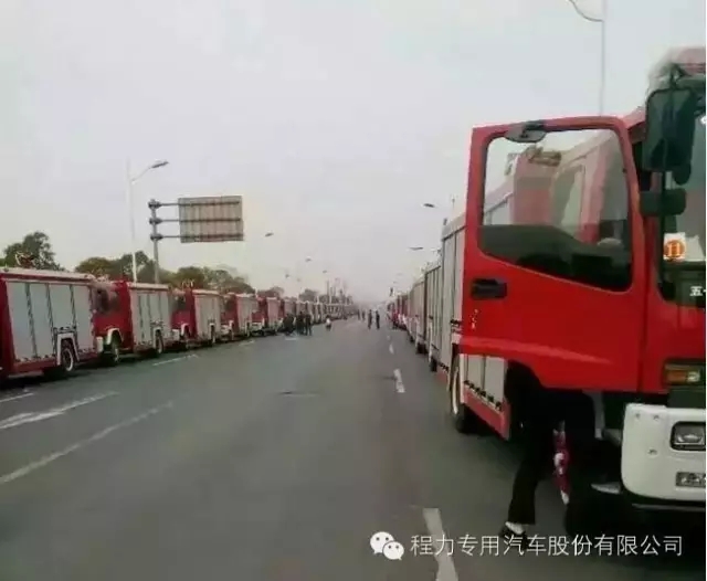 下圖是柬埔寨公安部來程力檢查驗收115臺慶鈴五十鈴泡沫消防車和發(fā)車場景圖: