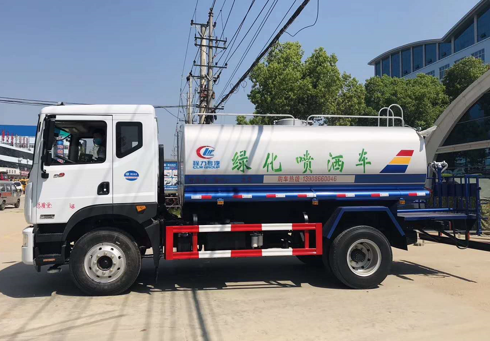 這款程力公司出產(chǎn)的東風(fēng)D9大多利卡多功能綠化灑水車,灑水車采用了東風(fēng)股份公司的正宗原裝底盤,東風(fēng)康明斯180馬力發(fā)動機,六缸機,國五排放;帶空調(diào)和方向助力,車頭前配置前沖,后灑,側(cè)噴,高位花灑,后平臺帶綠化灑水車炮,罐體采用4mm武鋼優(yōu)質(zhì)碳鋼制作,裝水12噸;罐體后帶工作平臺,平臺上安裝綠化灑水高炮,炮可噴灑農(nóng)藥,并有多種雨狀可調(diào)節(jié)(大雨中雨毛毛雨霧狀),泵可自吸自排,帶自流閥,帶消防接頭,帶過濾裝置。