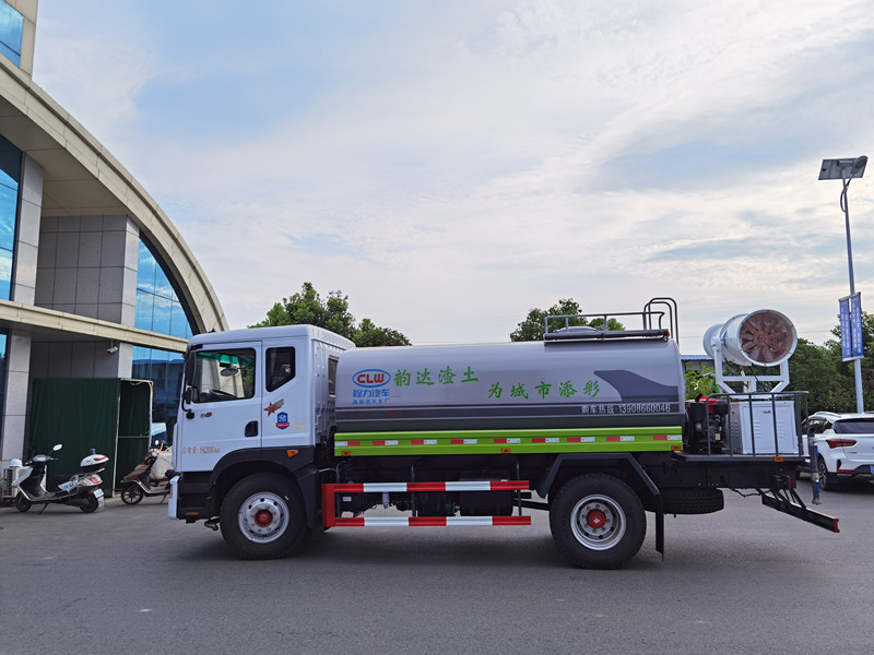 罐體實(shí)際容積:15立方,新款工藝罐體,灑水車罐體鋼板采用4mm碳鋼Q235材質(zhì)一次成型,大口徑直通球閥,鋁合金三通,整車螺栓鉚接,無焊接;罐內(nèi)隔板具有防波作用,以減輕汽車行駛時(shí)罐體液體沖擊,配大功率專用灑水泵,泵可自吸自排,整車前沖、后灑、側(cè)噴、帶65消防接口,帶自流閥,帶過濾裝置;后平臺(tái)帶綠化灑水炮,灑水炮可全方位旋轉(zhuǎn),可連續(xù)調(diào)成直沖狀、大雨、小雨、毛毛雨;前封頭帶水位計(jì),后平臺(tái)主管路帶1寸澆花接口;尾部帶安全告知牌:“隨時(shí)停車,注意安全”,帶兩根抽水管及陰陽端;罐體兩側(cè)噴“綠化噴灑水車”字樣,罐體顏色:深灰/綠;后平臺(tái)配CLW-40型全自動(dòng)柴油霧炮機(jī)組,霧化有效射程40米,水冷發(fā)電機(jī),全自動(dòng)遙控控制;其他標(biāo)配。