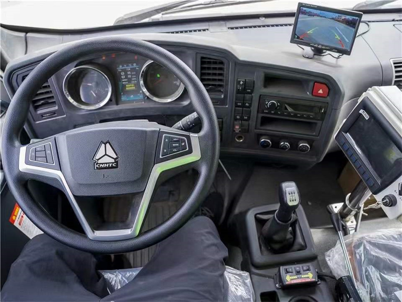 16方洗掃車_重汽豪沃G5X洗掃車上裝配置:高壓水泵采取國際知名CPX036型柱塞泵,流量合適,壓力高,允許壓力達10MPa。中置寬吸盤。室內監(jiān)控倒車及洗掃狀態(tài)。清水箱充分利用車身上的空間,體積大。吸盤上面裝有左右噴水桿。