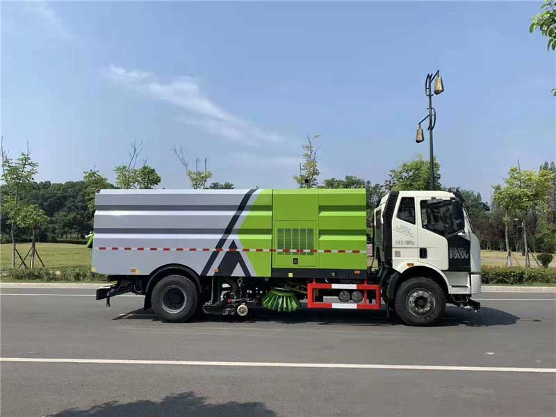 J6_16方洗掃車上裝配置:自潔裝置可在垃圾箱卸料時幫助卸料,清洗垃圾箱內(nèi)部。4個高度可調(diào)試吸嘴輪,保證吸嘴與路面的合理間隙。T7012IR柱塞,流量合適,壓力高,最大允許壓力可達(dá)16MPa。左右單掃盤??得魉?70馬力。左右立掃可以分開控制,可同時實現(xiàn)全掃和右掃等不同作業(yè)模式。16方洗掃車。