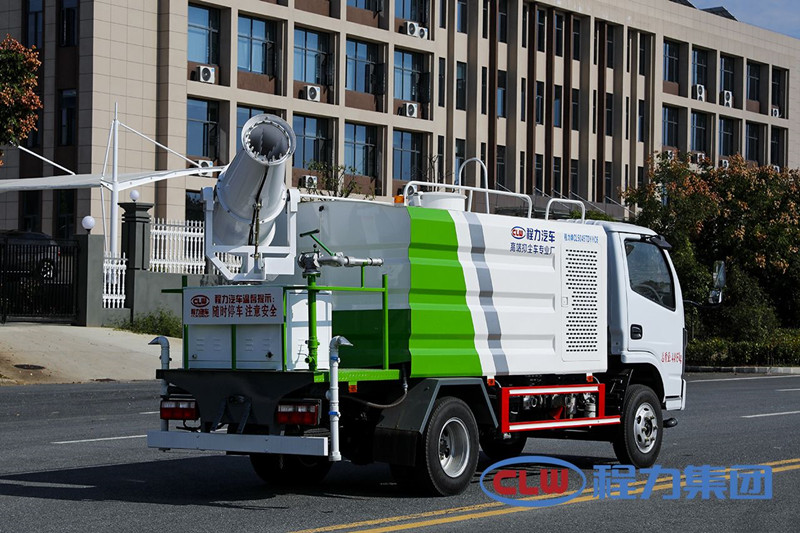 上裝配置:罐體容積約:5立方米,方形罐體制作,罐體鋼板采用Q235碳鋼鋼材,前沖后灑、側噴、平臺高炮、自流閥及消防接頭各1個、水管2根、標配億豐泵或金龍泵,后平臺加裝30米、40米霧炮機組;其他標配。