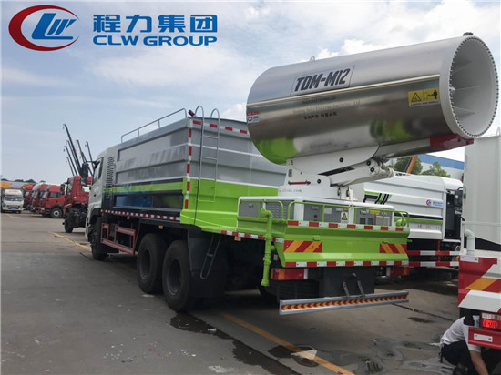 天龍抑塵車工作原理:采用配備的副發(fā)動機(jī)及發(fā)電系統(tǒng)向(霧炮)風(fēng)機(jī)供電,利用超高風(fēng)壓將高壓水泵噴出的水霧加壓噴射,以得到更遠(yuǎn)距離的輻射范圍。霧炮采用遙控裝置,可自由調(diào)整噴射角度及旋轉(zhuǎn)方向,使用更加便捷。霧炮車同時也被廣泛應(yīng)用于城市街道、港口碼頭、露天物料堆場、煤炭物流園區(qū)、露天礦山開采區(qū)、露天爆破粉塵、建筑施工拆遷、城市園林綠化、農(nóng)業(yè)噴藥等項目或場所的除塵降溫、消毒防疫。東風(fēng)天龍多功能抑塵車后部可選配河南萬豐牌WF-120型環(huán)保噴霧機(jī)組,實(shí)際水霧射程80-100米左右。